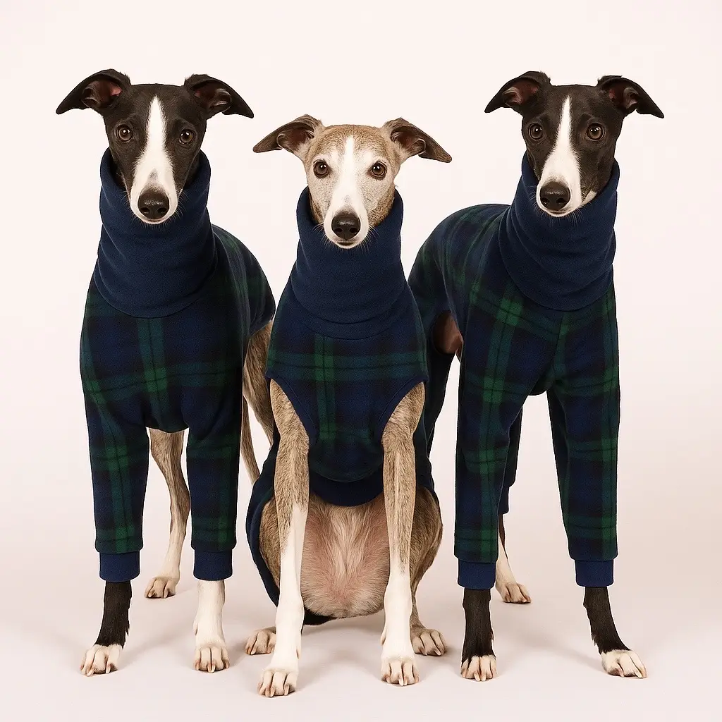 Every item, from sleek whippet coats to snug greyhound fleece, is crafted to suit the unique body shape of these sighthounds, ensuring a perfect fit.