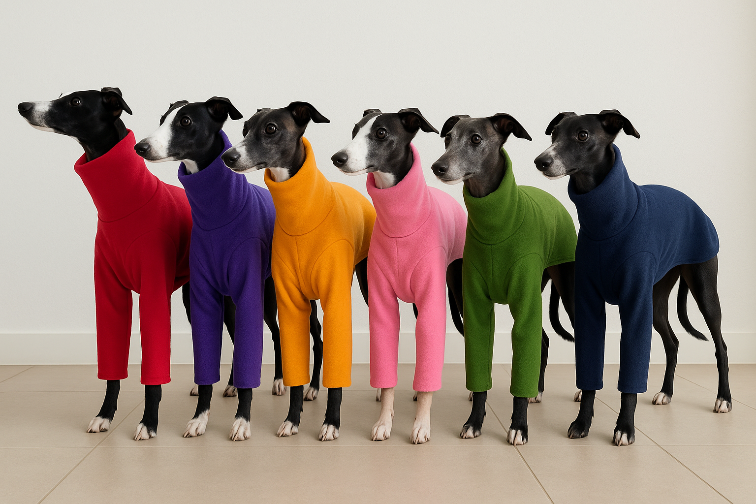 Every item, from sleek whippet coats to snug greyhound fleece, is crafted to suit the unique body shape of these sighthounds, ensuring a perfect fit.