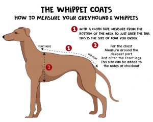 With the dog standing, using a cloth measuring tape, ( NOT METAL) take the length of your hounds back from the base of the neck along the spine to over the bum to where you want the coat to sit, this is the size of coat you will order.