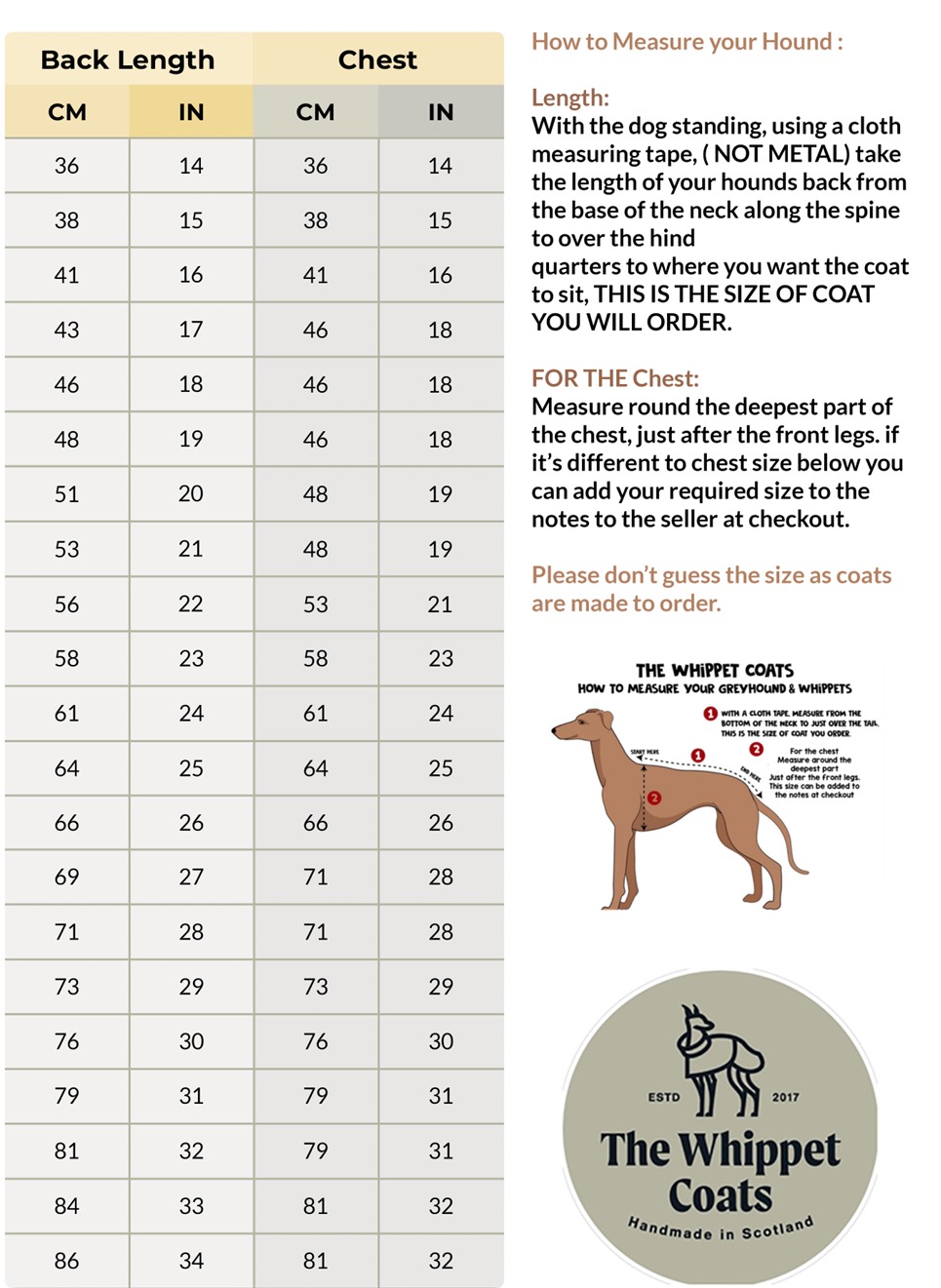 Each coat is handmade to order in Scotland, offering a higher quality alternative to generic mass-produced dog coats and ensuring a more considered fit and finish.