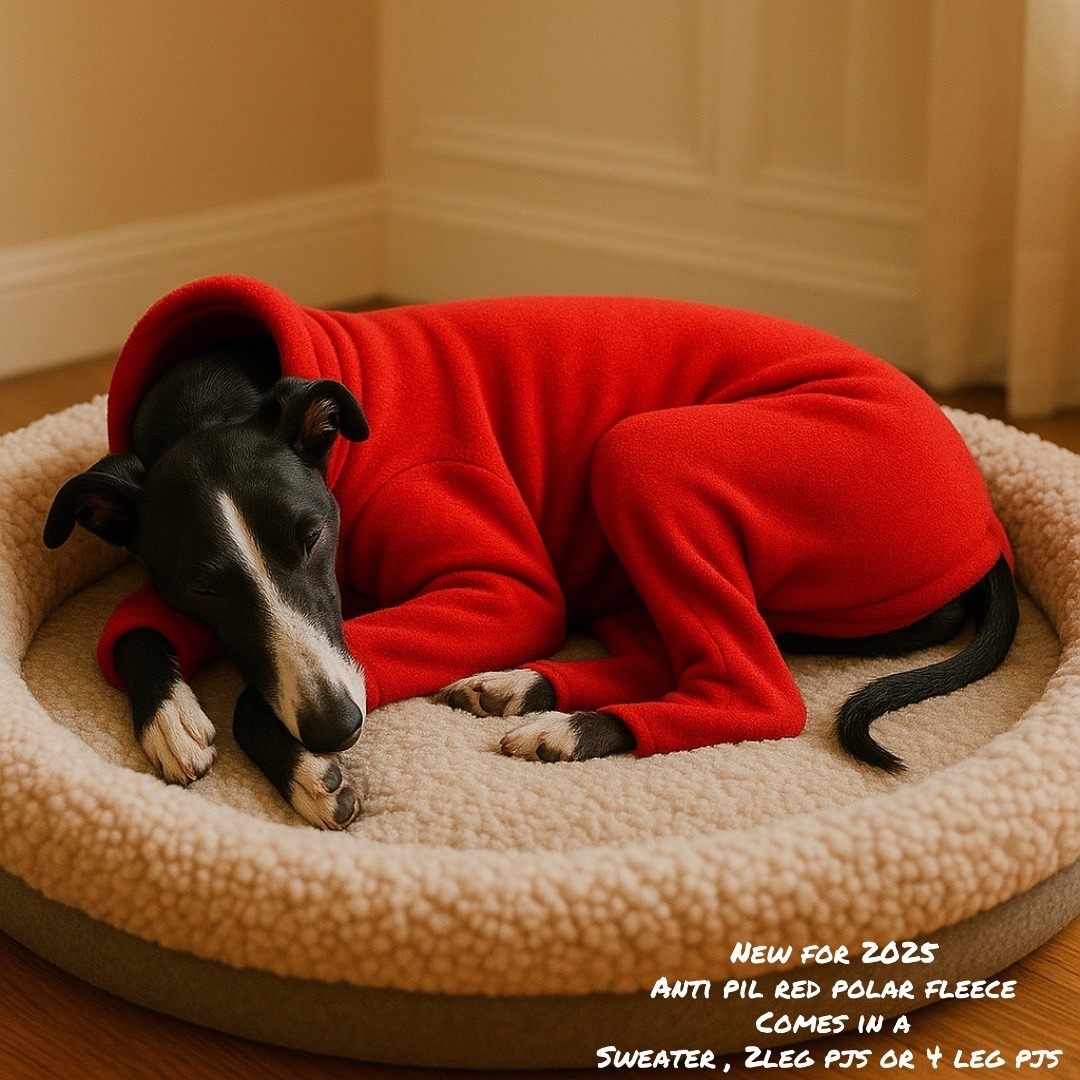 Designed to keep your whippet warm and cosy made with polar fleece. Pjs come in 4 leg and a polo neck as standard and is open underneath for toileting – to suit boys and girls.