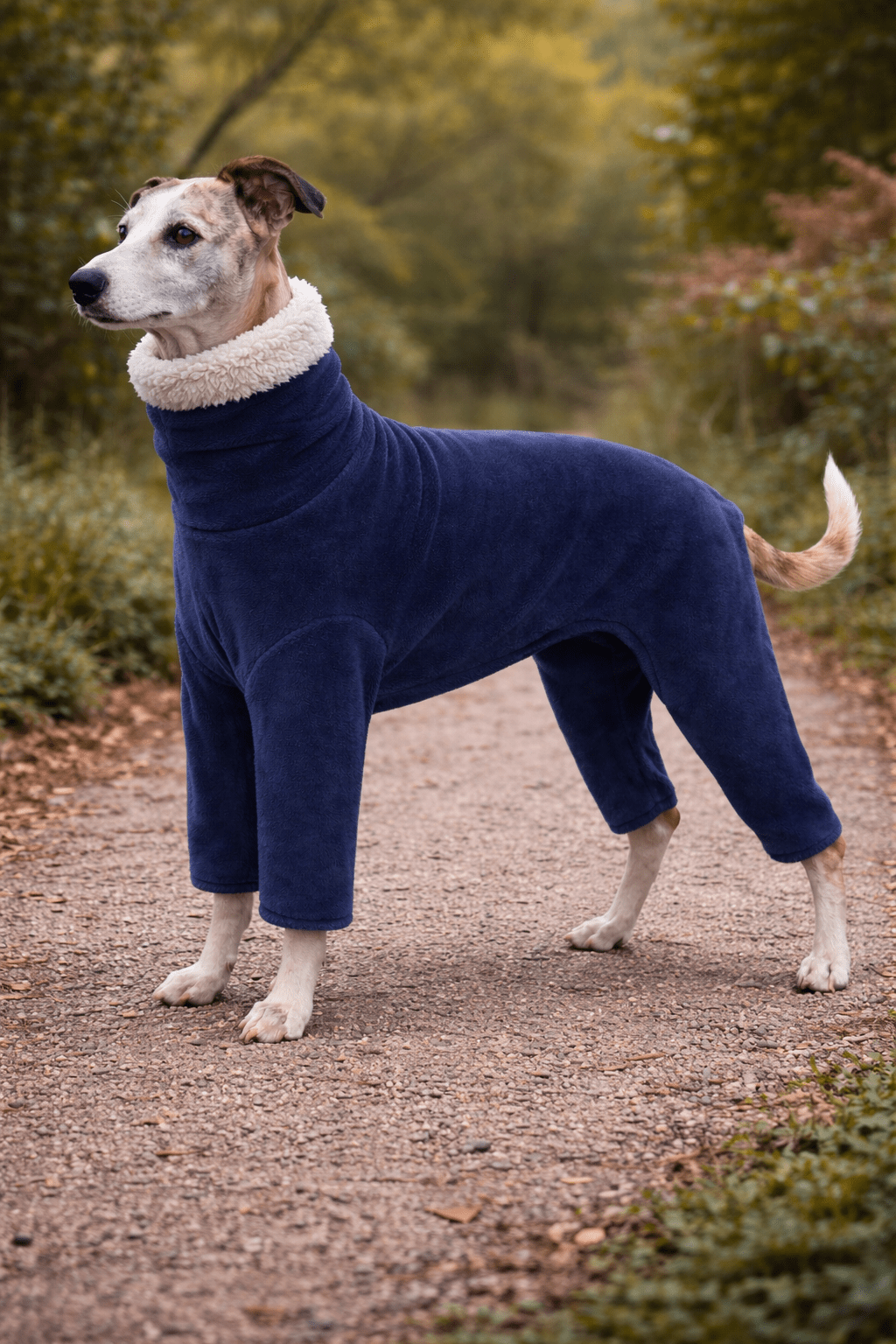 Wrap your hound in cosy comfort with our Soft Velour & Sherpa Fleece Pyjamas, thoughtfully designed for sighthound shapes.