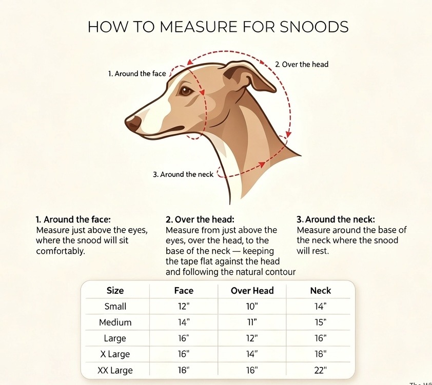 The snood should fit comfortably around your dog’s head and neck without being too tight.