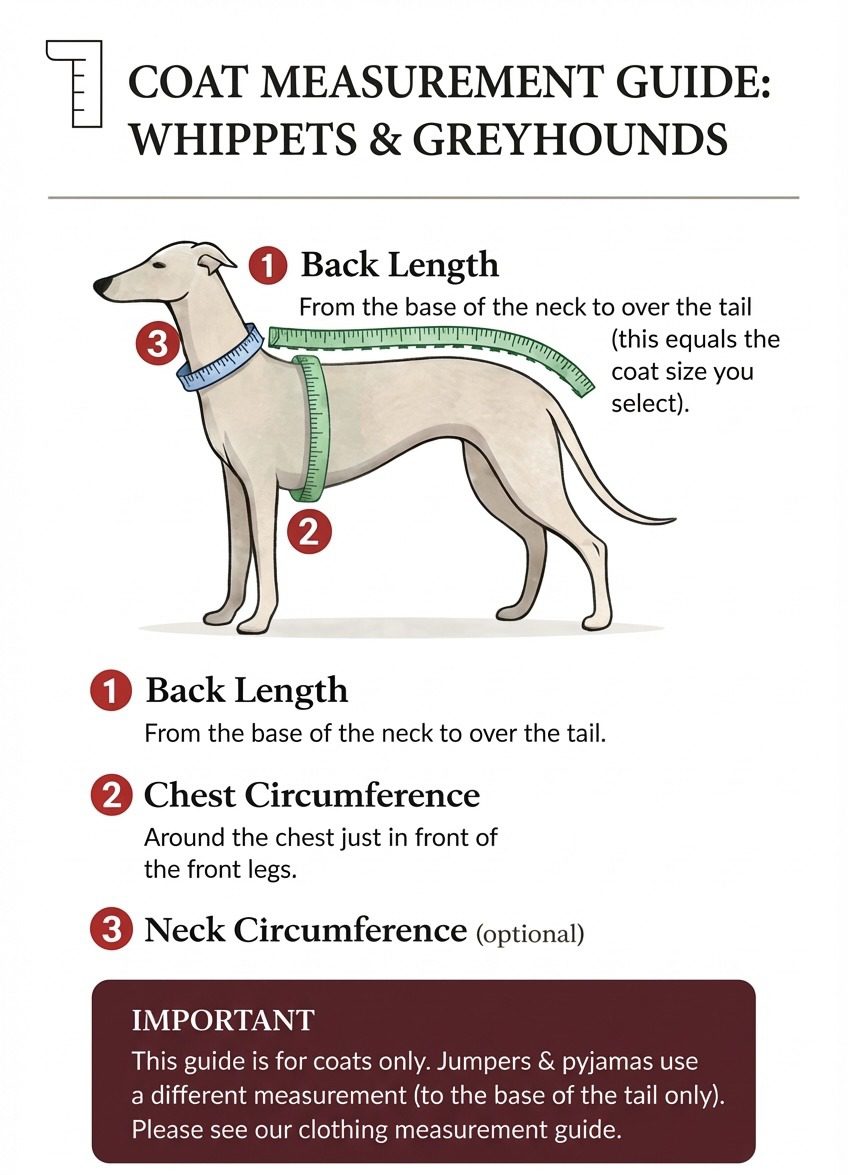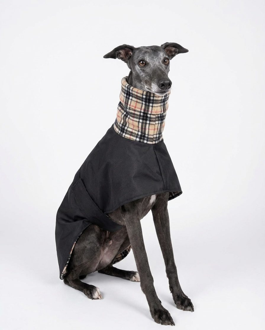 Designed especially for deep-chested sighthounds, this coat gives a much better fit than standard dog coats, with good chest coverage, warmth around the body, and freedom to move comfortably.
