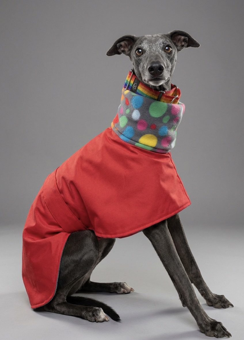 Each coat is handmade to order, which allows me to make coats that fit sighthounds properly and comfortably.