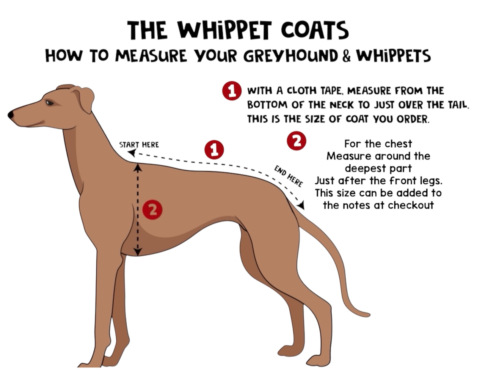 How to Measure Your Whippet, Greyhound, or Sighthound for a Coat If you’ve ever tried shopping for coats for your Whippet, Greyhound, or other sighthound breed, you’ll know that their unique body shape can make finding the right fit a